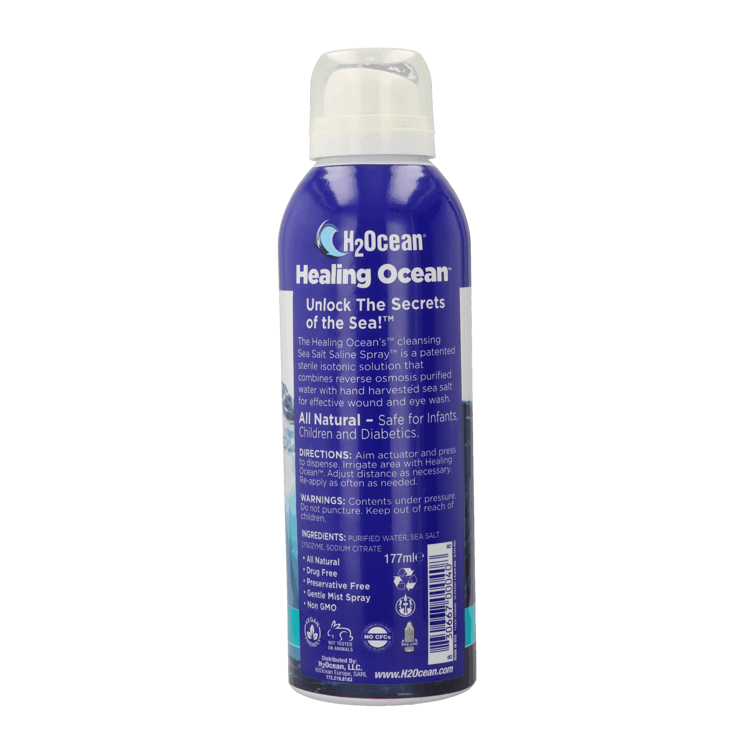 Our organic unrefined sea salt saline spray provides a calming effect on tissues and wounds while reducing pain and inflammation. It’s made with the highest grade natural ingredients, carefully validated by our scientific team, and tested by 3 different facilities. H2Ocean uses enzymatic sea salt solution like your saline immune system that is naturally found in your body. The spray is safe for all skin types, pH balanced, and enriched with the same 82 trace elements and minerals. We take pride in offering a hypoallergenic product that remains sterile, thanks to our innovative bag-in-can packaging eliminating cross-contamination. We were the first to use this packaging also in the wound care, skin care, and piercing industries. This eliminates the air entering the formula, unlike those cheap pump sprayers.